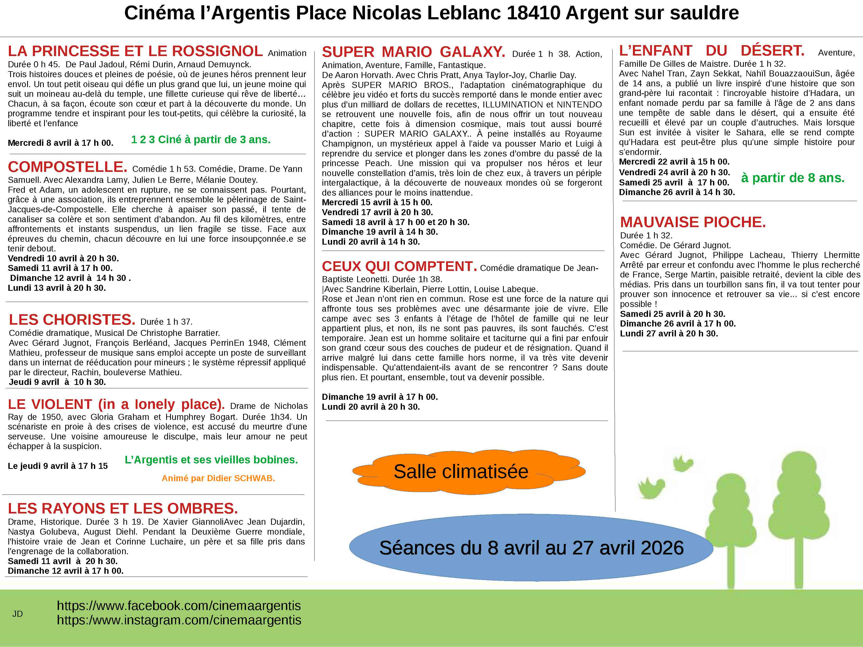 Programme du 20 mars au 6 avril 2026 :